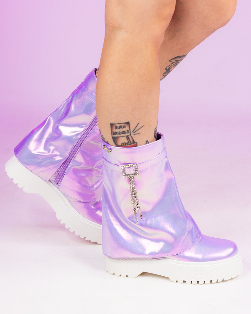 Demonia Holographic Black Stacked Platform Ankle Boots
