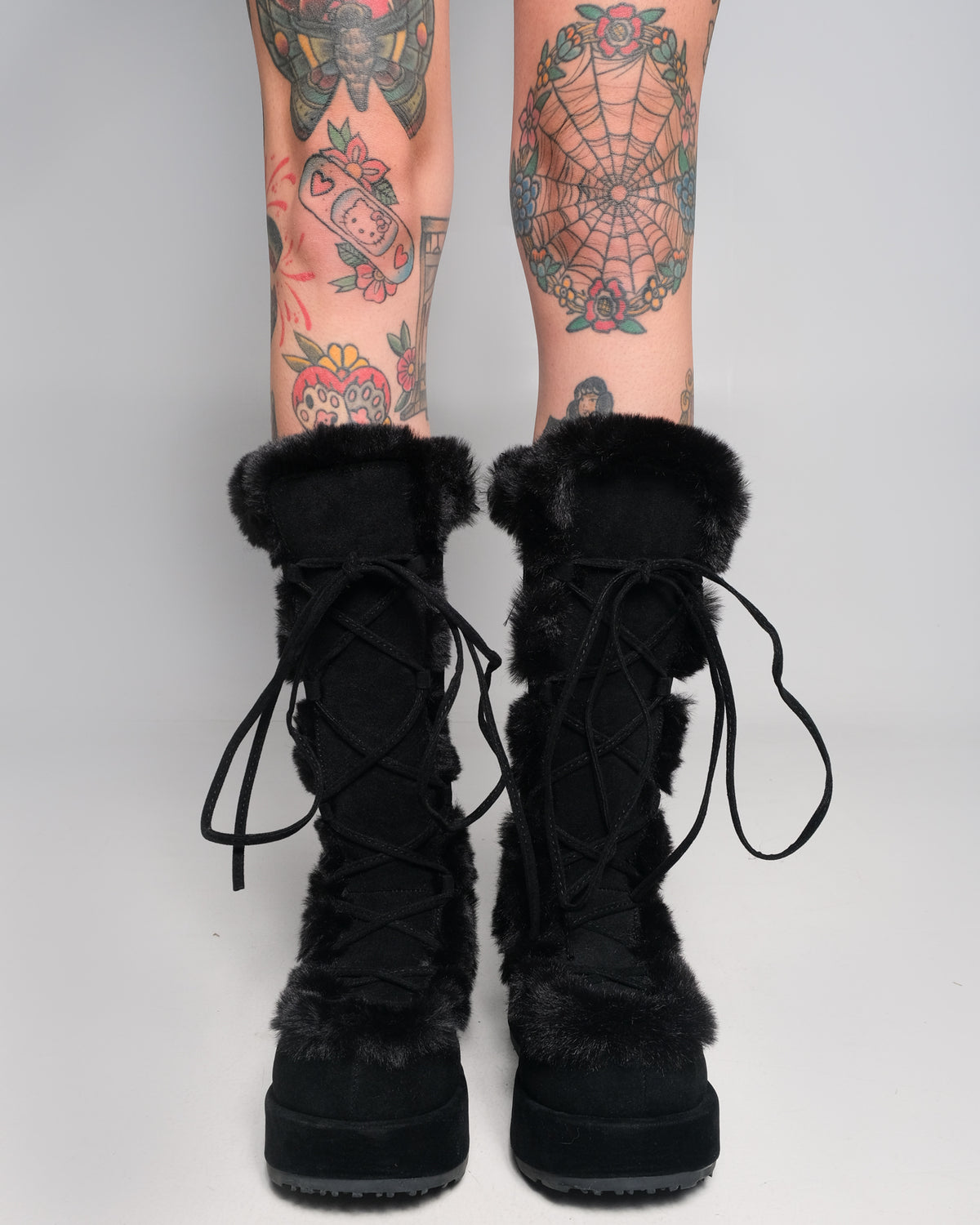 3/4" (70mm) Platform Lace-Up Mid-Calf Boot Featuring Faux Fur Trim Detail, Full Inner Side Zip Closure.